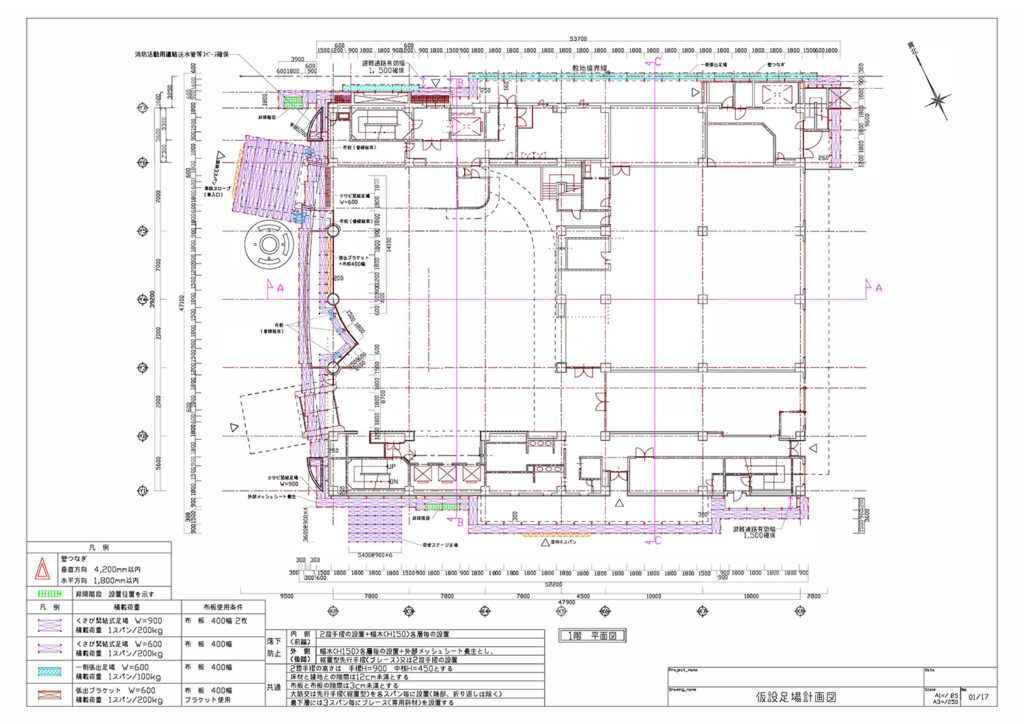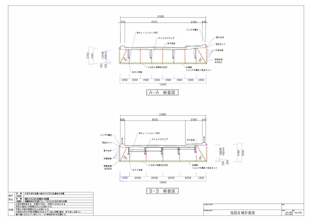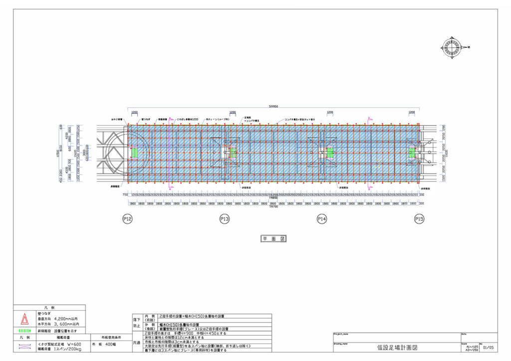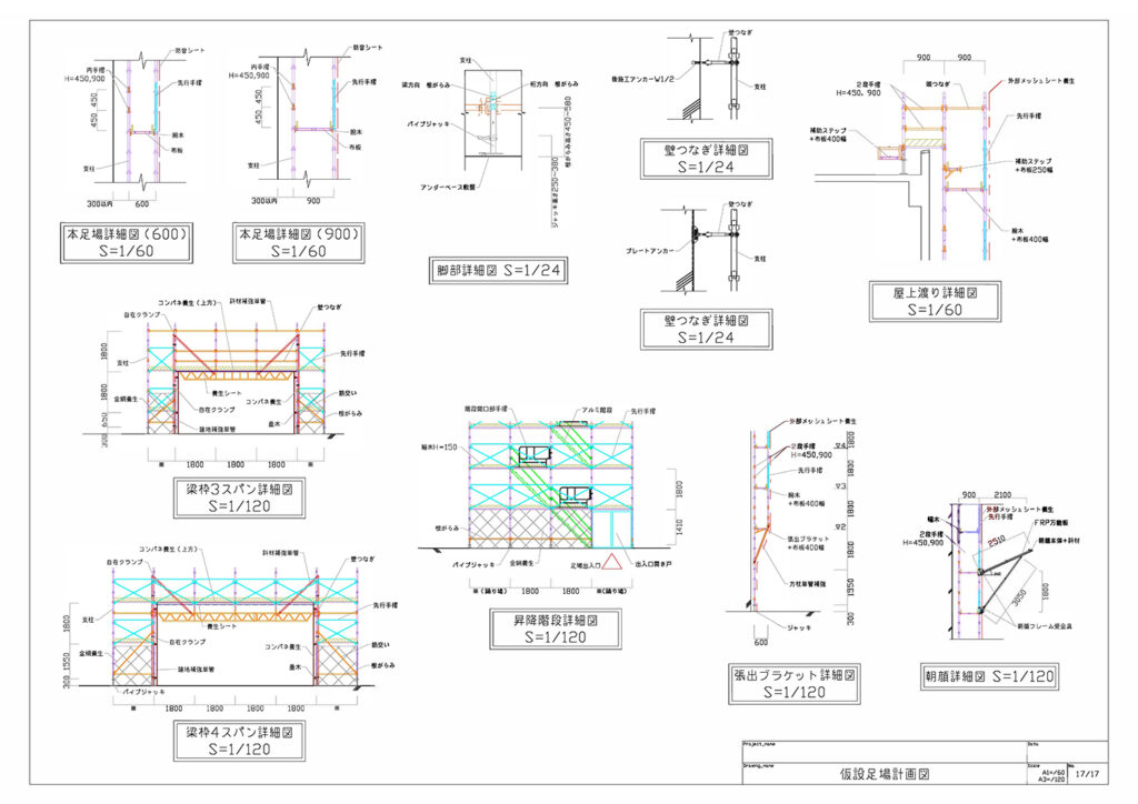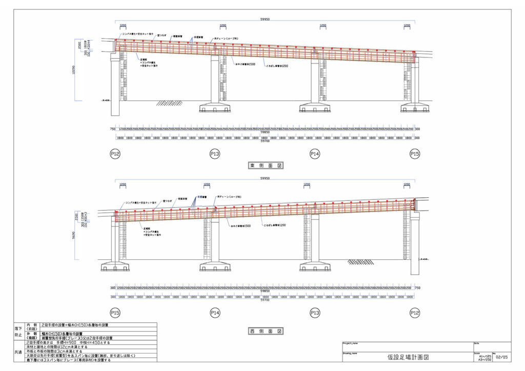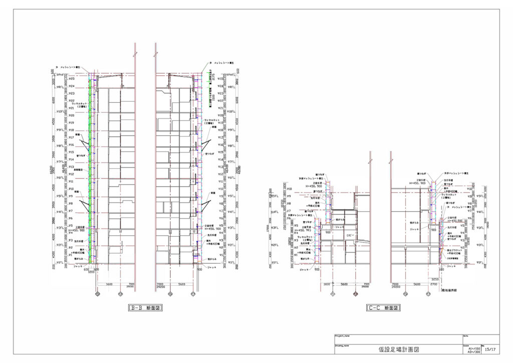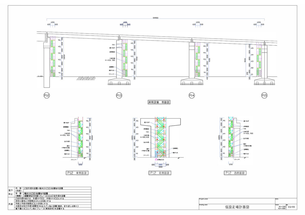 | 仮設足場計画図 | 平面図・各方角立面図・断面図・詳細図 | ¥12,000〜/枚 |